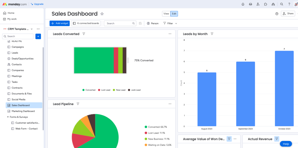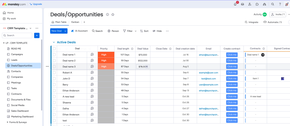 The CRM templates serve as a valuable tool for organizations to seamlessly organize customer data and interactions, facilitating better decision-making in marketing and sales while keeping operations within Monday.com. Our CRM templates were carefully designed so users can efficiently manage their customer data like contacts, companies, leads, and deals. Operations are also streamlined with the framework designed for scale. Easily integrate with other solutions to provide even more of a feature packed tool.