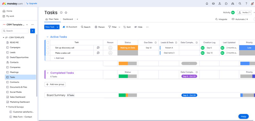 - Dedicated Documents & Files board to store important sales and marketing documentation.